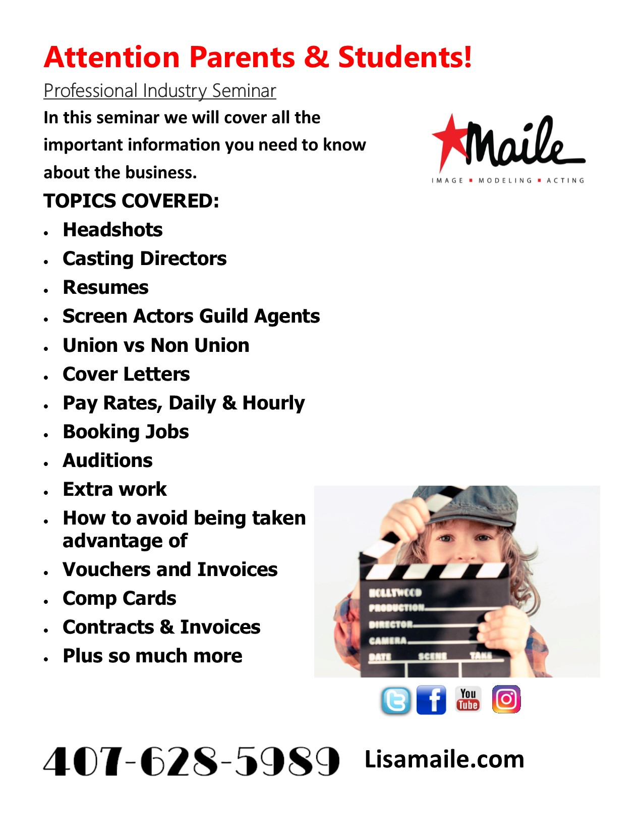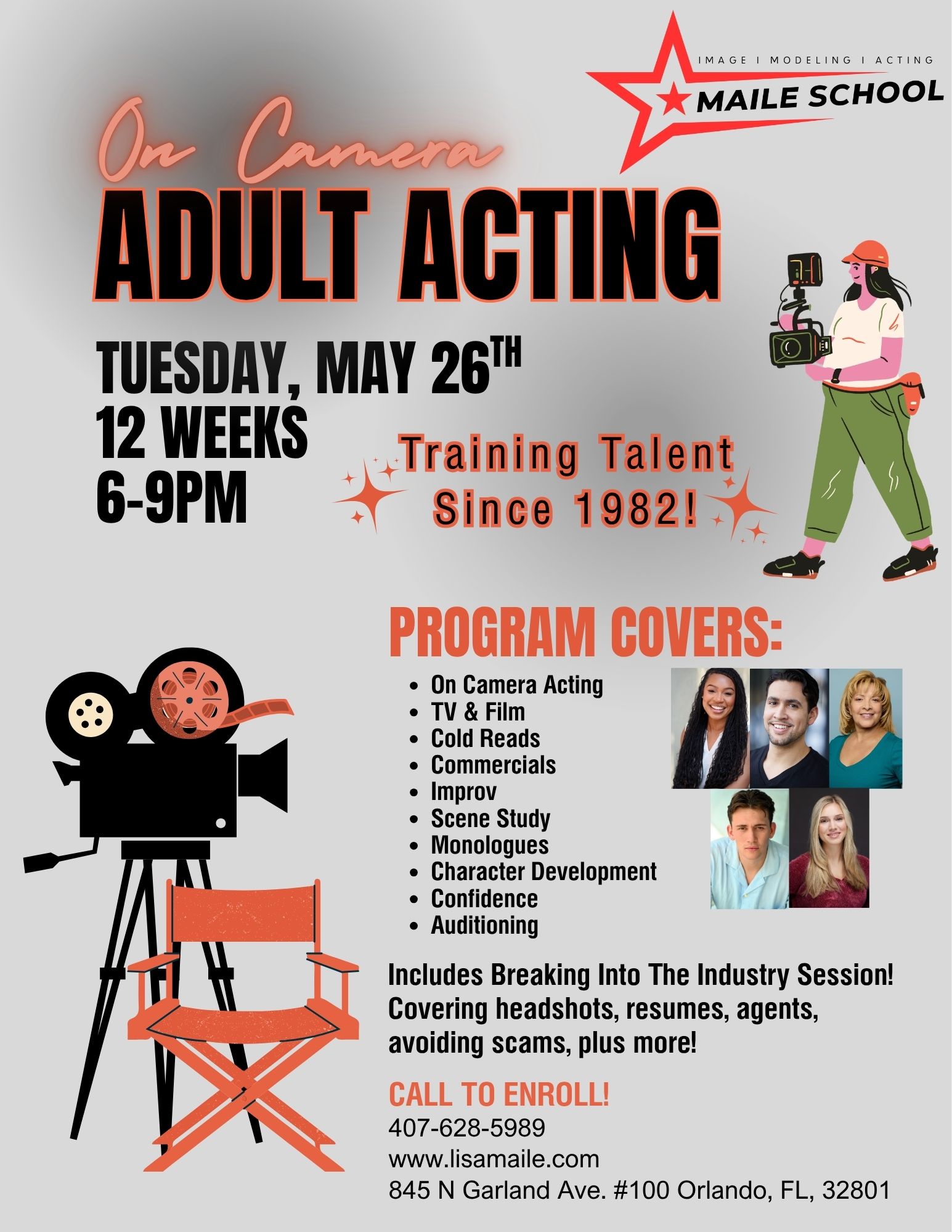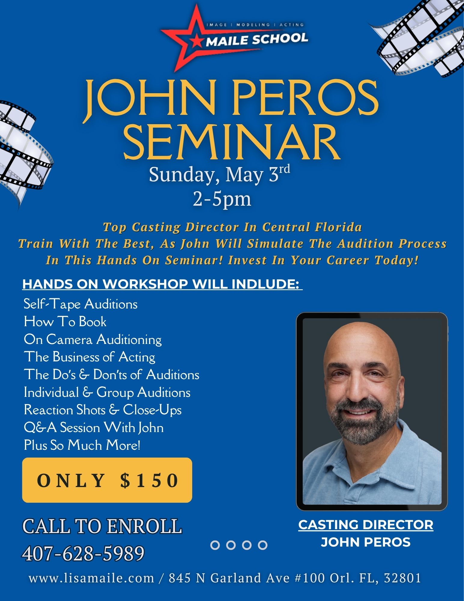 Located at 845 N. Garland Ave #100 Orlando, FL 32801. The Maile Professional Image, Modeling & Acting School was founded in August 1982 and has been training talent in Central Florida longer than any other school of its kind. The school is recommended by top talent agencies and is the home of John Peros Casting, Central Florida’s busiest and most respected Casting Company.